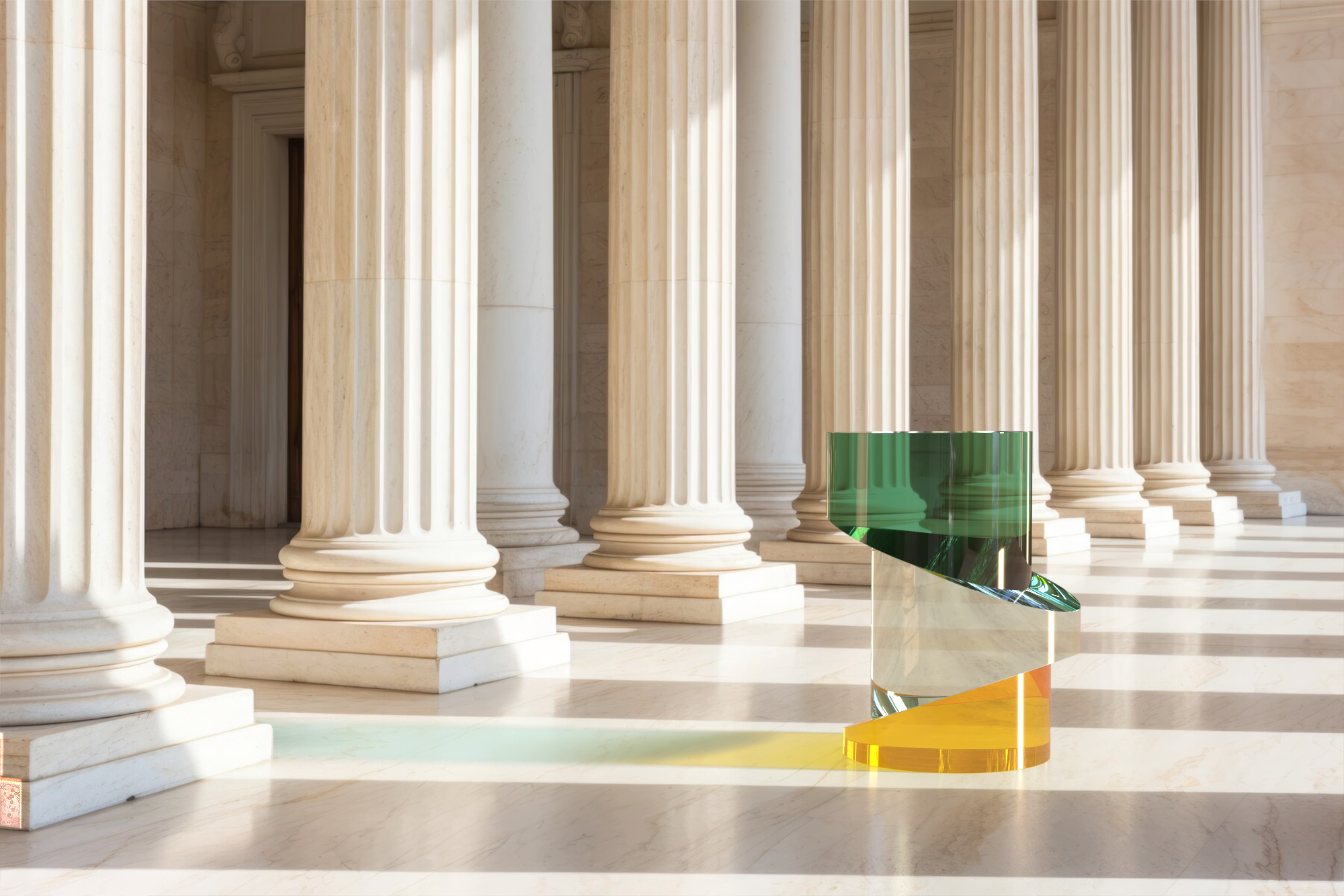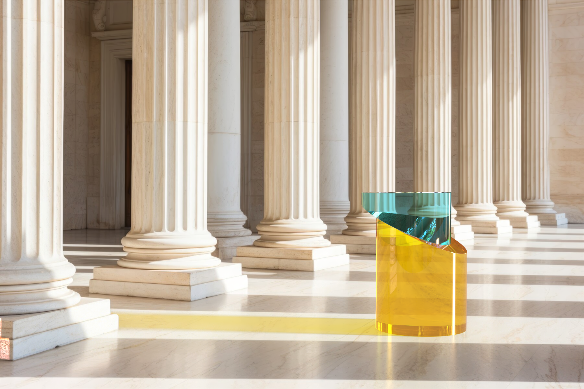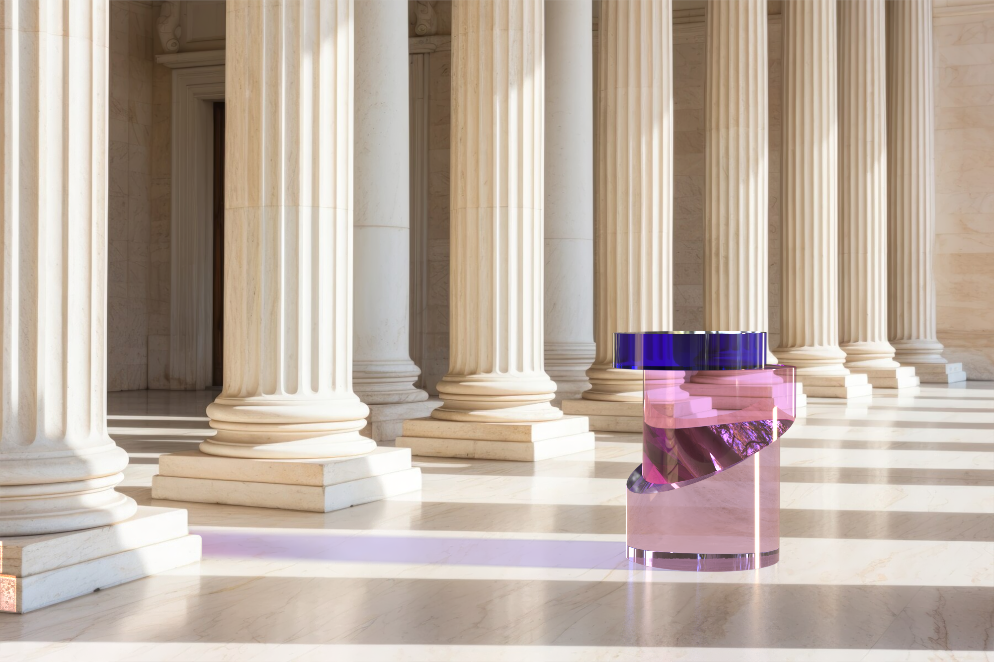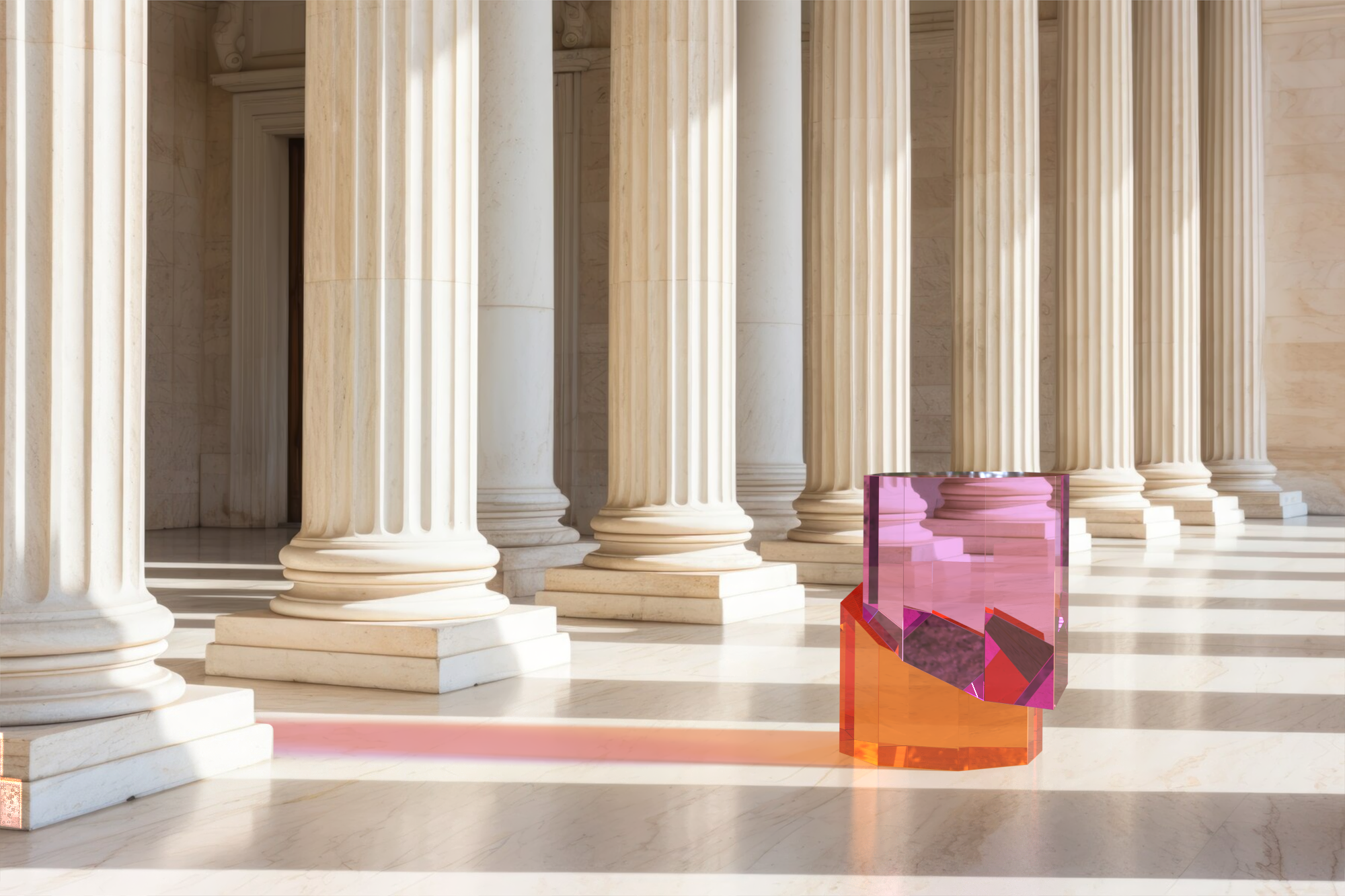 È presente la possibilità di scegliere tra due versioni: la prima realizzata attraverso l’uso di blocchi di plexiglas interamente colorato e la seconda ottenuta con una stratificazione del colore con blocchi trasparenti.