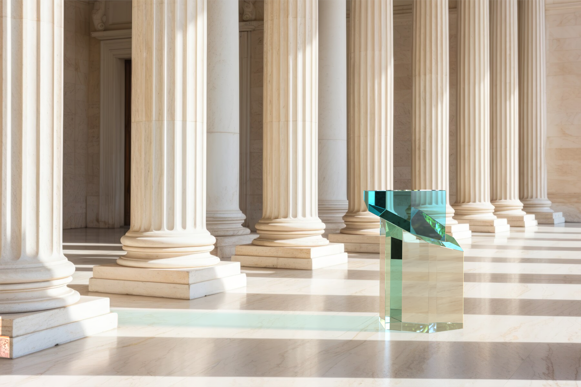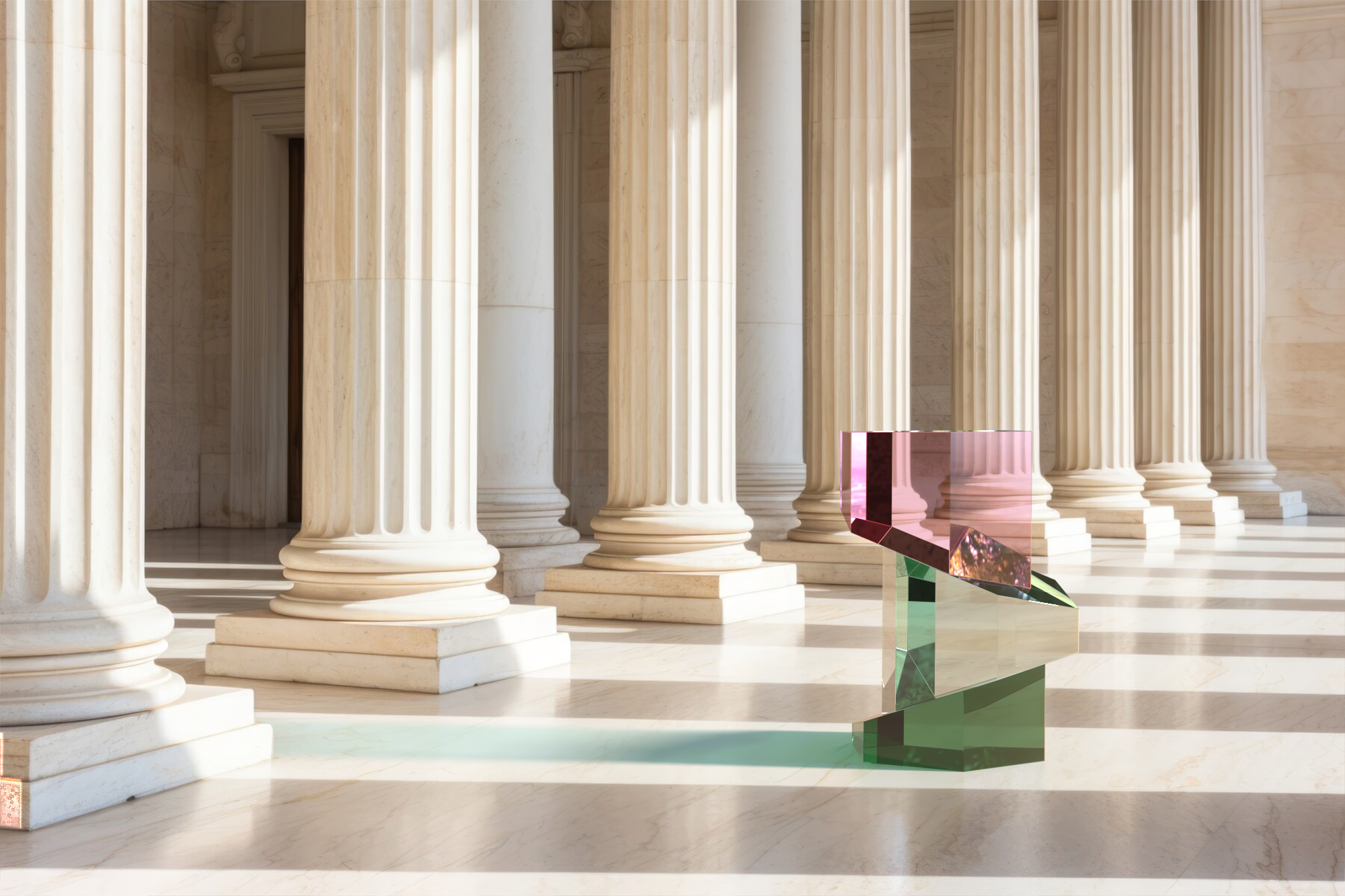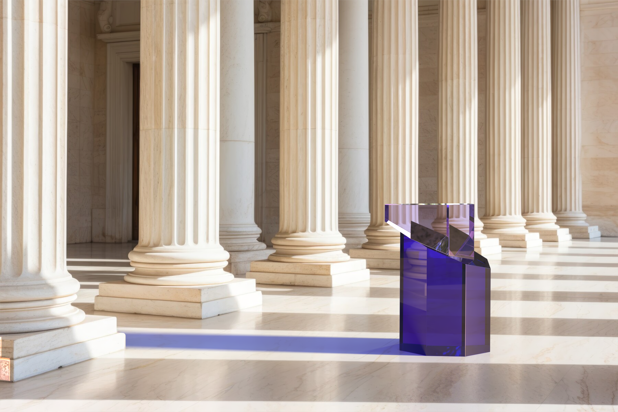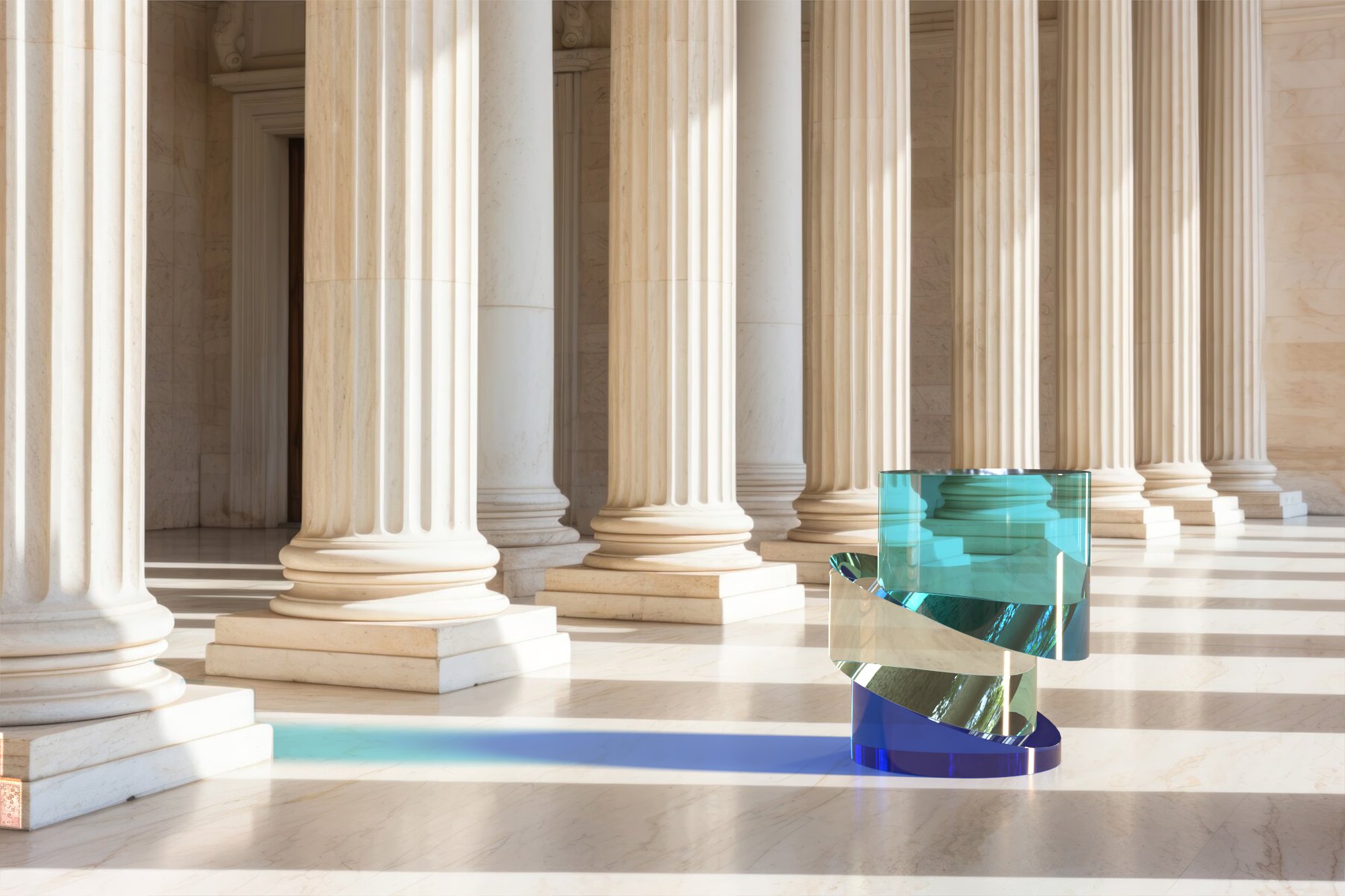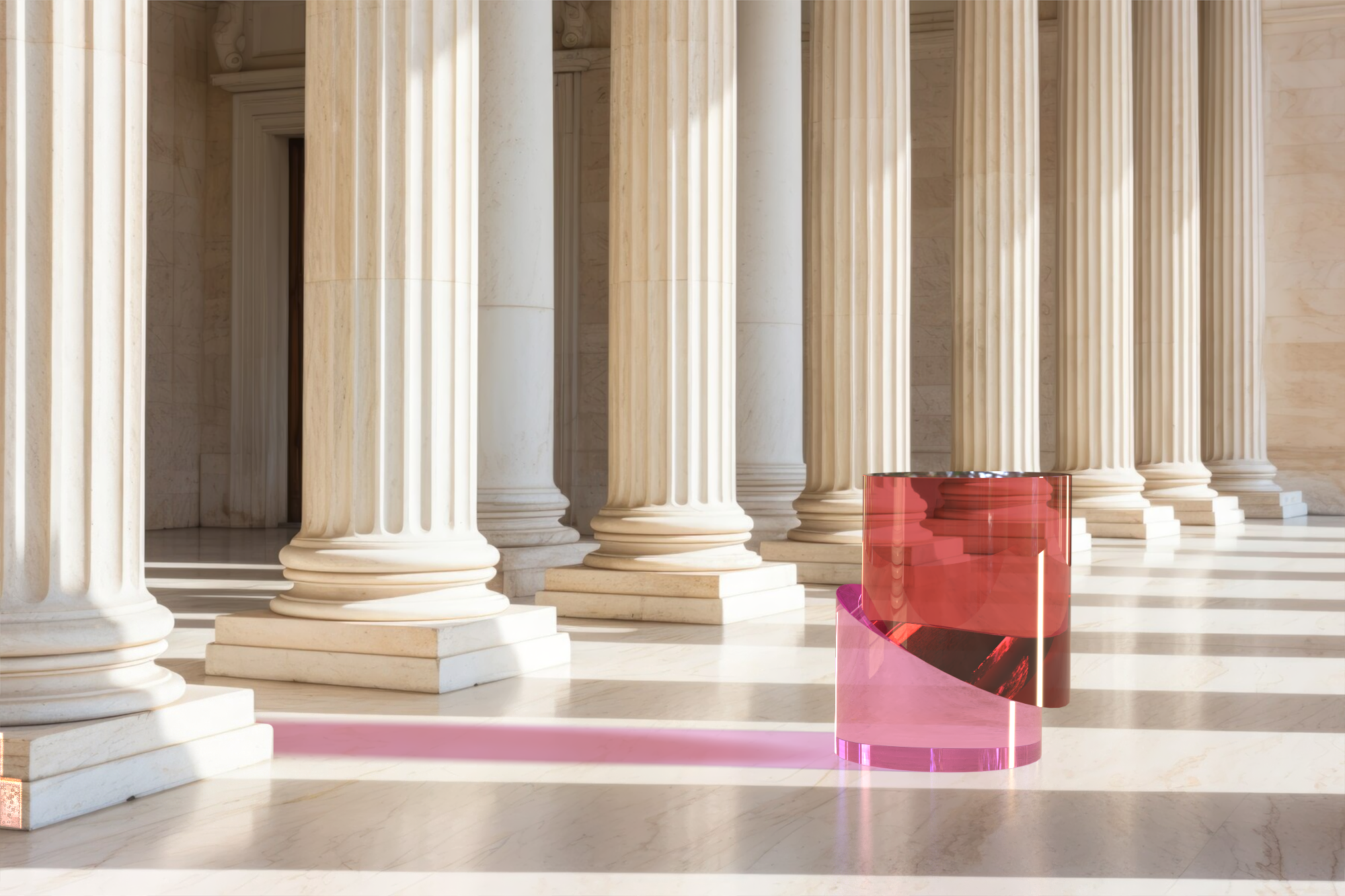 È presente la possibilità di scegliere tra due versioni: la prima realizzata attraverso l’uso di blocchi di plexiglas interamente colorato e la seconda ottenuta con una stratificazione del colore con blocchi trasparenti.
