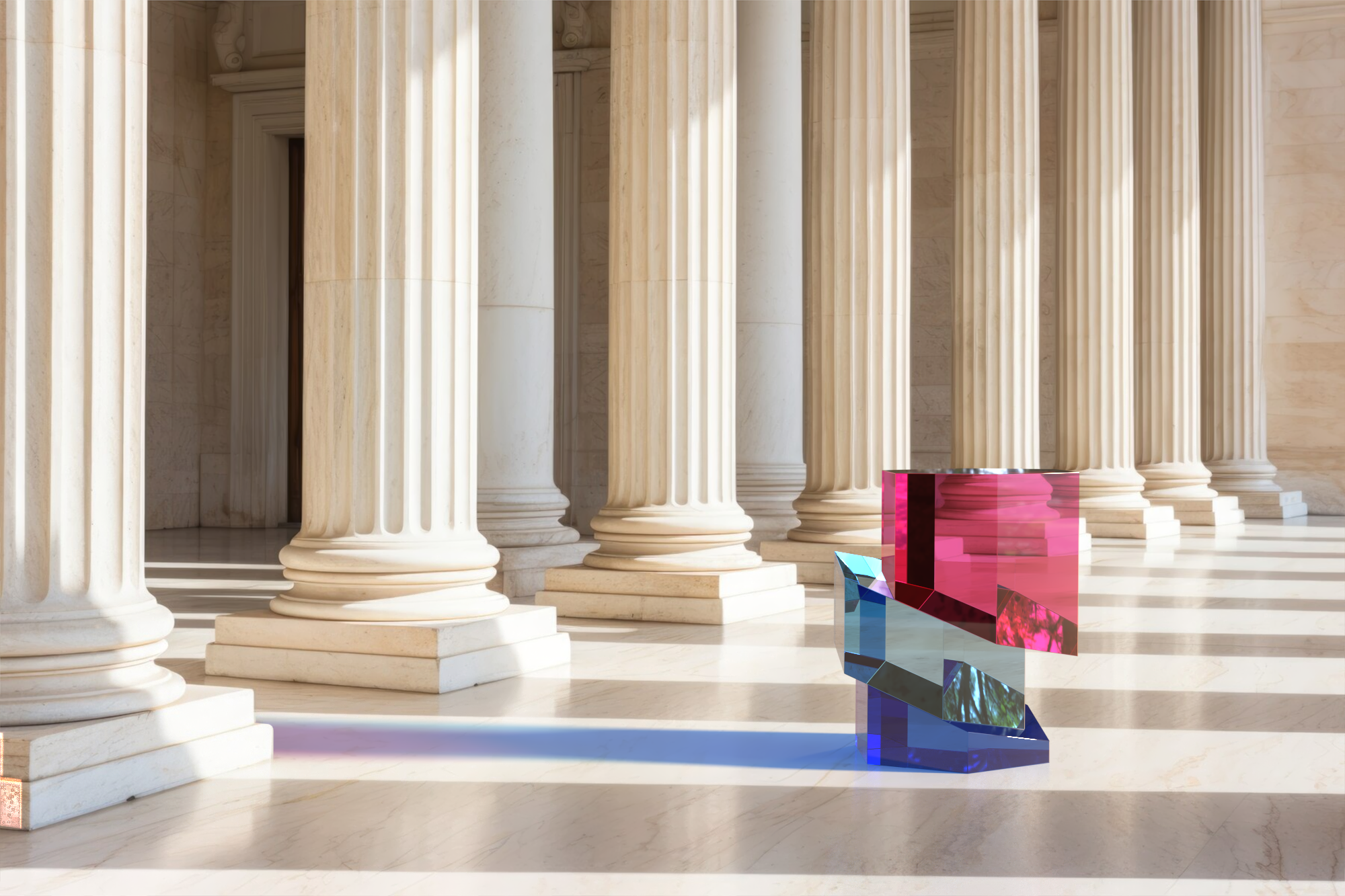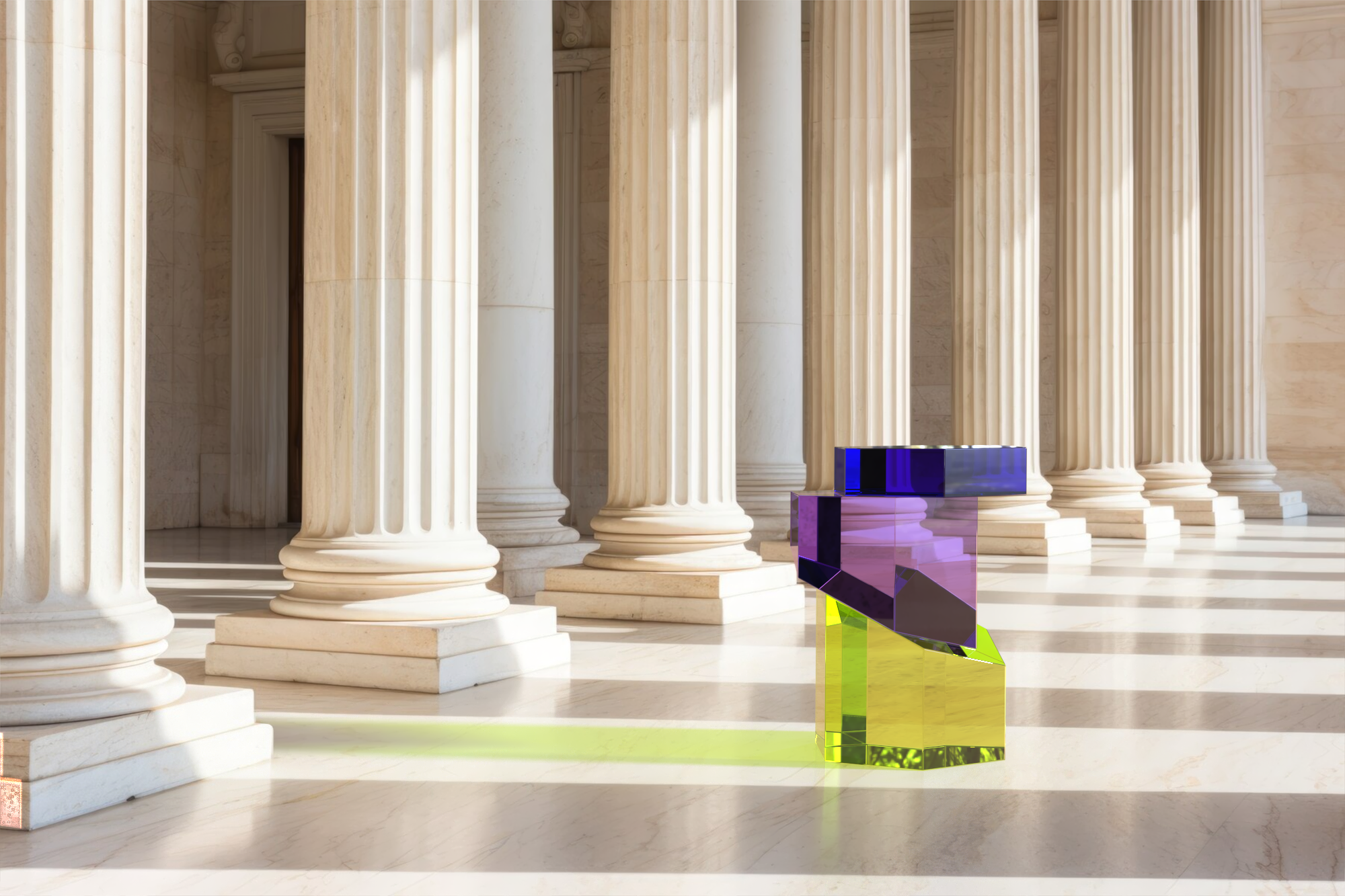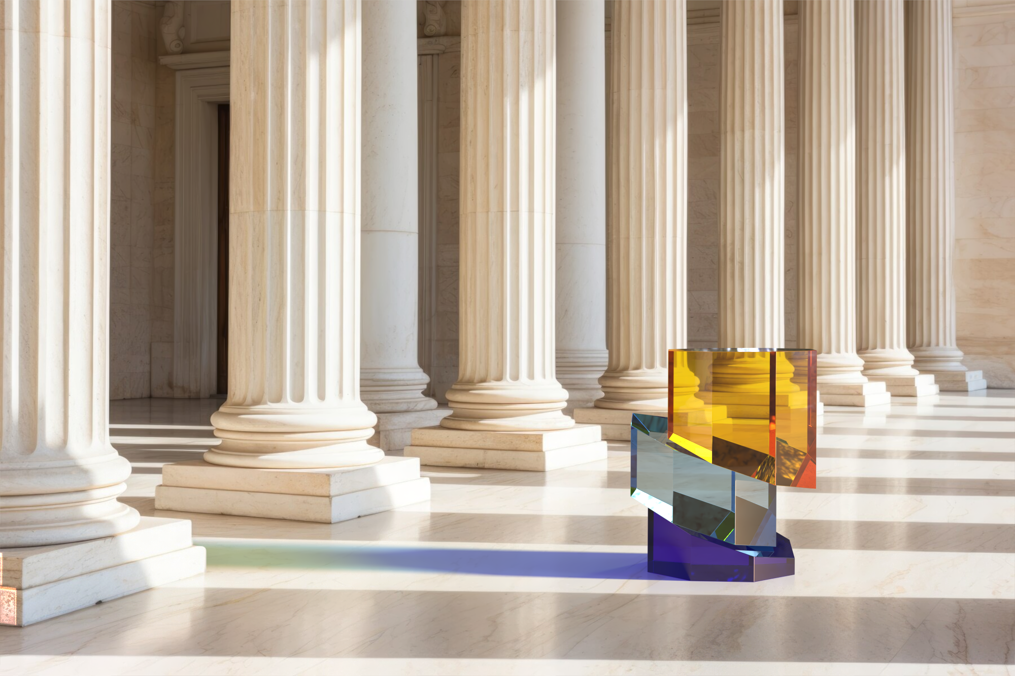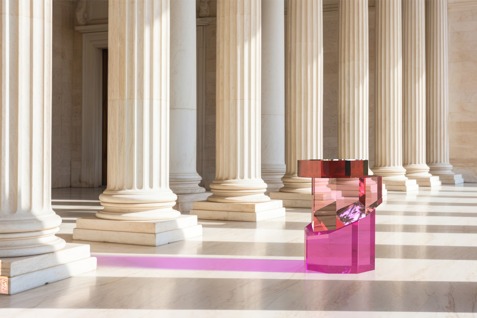 There is the possibility to choose between two versions: the first one made by using blocks of plexiglas entirely colored and the second obtained with a stratification of color with transparent blocks.